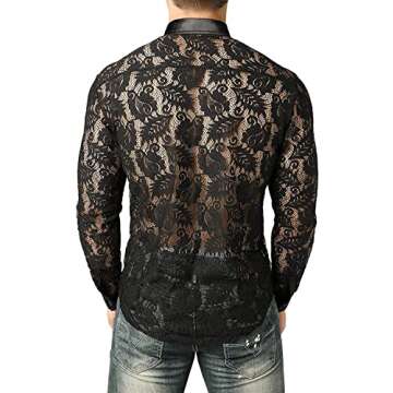 ZEROYAA Mens Night Club Style Lace Leaves Shirts Long Sleeve Button Down Sexy Mesh See Through Dress Shirts ZLCL07 03 Small
