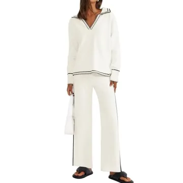 Show moreIntroducing the ZESICA Women's Knit Lounge Two-Piece Set, a perfect blend of style, comfort, and versatility that will transform your wardrobe. Designed with the modern woman in mind, this chic outfit features a striking v-neck long sleeve pullover top and wide-leg pants, ideal for any occasion—from a cozy day at home to a casual outing. The set is crafted in a soft, breathable, and stretchy fabric that feels delightful against the skin, making it not only fashionable but also incredibly comfortable. Available in sizes S to XL, this outfit accommodates a range of body shapes and sizes with ease, catering to your unique silhouette while maintaining a loose, relaxed fit.