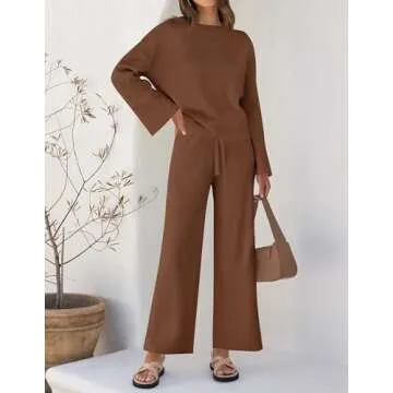 ZESICA Women's 2 Piece Outfits Set - Cozy Long Sleeve and Wide Legs