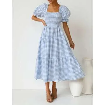 This dress is not just stylish but also practical. The square neckline and high waist create a flattering outline, and the elastic bands on the shoulders ensure a comfortable wear that adapts to your movements. The faux tier feature on the skirt adds a delightful touch of femininity, while the puff sleeves enhance its whimsical appeal.