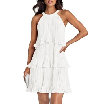 Show more Step into the summer season with the exquisite ZESICA Women's 2024 Summer Halter Dress, a stunning piece designed to elevate your wardrobe. Featuring a unique halter neck and a playful ruffle hemline, this dress is a perfect blend of style and comfort. The tiered design adds a flirty touch, while the backless style showcases your beautiful shoulders and collarbones. Crafted from soft, breathable, and lightweight fabric, this elegant mini dress is not only skin-friendly but also ensures you stay cool and confident in any setting, from beach outings to formal gatherings.