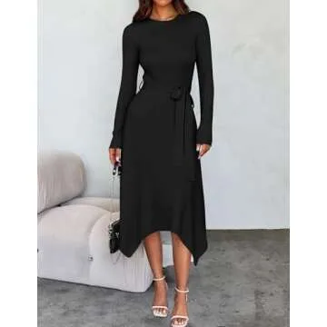 Show moreIntroducing the ZESICA Women's 2025 Spring Long Sleeve Crewneck Ribbed Knit High Waist Midi Sweater Dress, an essential addition to any fashion enthusiast’s wardrobe! This dress effortlessly combines style with comfort, perfect for the modern woman who wishes to showcase her elegance no matter the occasion. Made from high-quality ribbed fabric, this dress features a crew neck design and long sleeves, providing both warmth and a chic silhouette. The carefully designed A-line style accentuates your natural curves, while the unique high waist gives it a flattering look that suits various body types, making it a versatile piece for every closet.