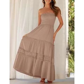 ZESICA Women's 2025 Summer Bohemian Strapless Off Shoulder Lace Trim Backless Flowy A Line Beach Long Maxi Dress,Pink,Medium