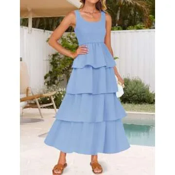 - Stylish Design: Featuring a scoop neck and sleeveless design, this dress has a high waist and a layered tiered hem that flatters any figure.