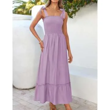ZESICA Women's 2025 Summer Boho Spaghetti Strap Square Neck Solid Color Ruffle A Line Beach Long Maxi Dress,Lavender,Small