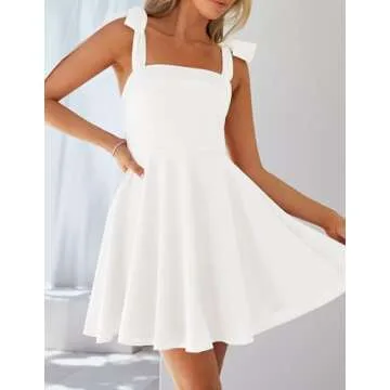 ZESICA Women's 2025 Summer Boho Square Neck Mini Dress Sleeveless Tie Shoulder High Waist Swing A Line Short Sundresses,White,Medium