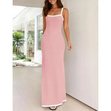 ZESICA Women's 2025 Summer Spaghetti Straps Maxi Dress Sleeveless Square Neck Lightweight Long Beach Dresses,Pink,Small