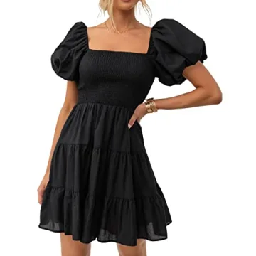 Show moreStep into a world of effortless style and comfort with the ZESICA Women's Boho Summer Square Neck Puff Sleeve Off Shoulder Smocked Tiered Casual A Line Short Mini Dress. This stunning mini dress is more than just a garment; it's a celebration of sophistication and playfulness, designed for the modern fashionista. Created by ZESICA, a brand renowned for its quality and chic designs, this dress features a smocked bodice and elastic high waist that beautifully flatters your silhouette while providing ultimate comfort. The enchanting short puff sleeves lend an air of whimsy, and the flowy A-line shape makes it suitable for virtually any occasion—whether you're at a casual outing or a sophisticated event.