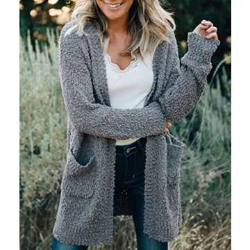 Show more Introducing the ultimate layering essential for those cozy days: the ZESICA Women's Fall Casual Long Sleeve Open Front Soft Chunky Knit Sweater Cardigan. Made from meticulously woven popcorn yarn material, this cardigan offers a delightful soft, warm feel that is perfect for snuggling up on chilly mornings or adding a chic touch to your evening outings. The open front design promotes easy wear, enhancing both convenience and style. One of the standout features of this cardigan are the two handy side pockets, which bring a practical aspect that every cardigan should meet. The cardigan is available in a variety of sizes, from S to XXL, ensuring a perfect fit for everyone. Its loose fit gracefully complements any body type, making it a must-have staple for your wardrobe.