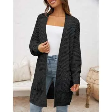ZESICA Women's Fall Long Batwing Sleeve Open Front Chunky Knit Cardigan Sweater,B&Black,Large