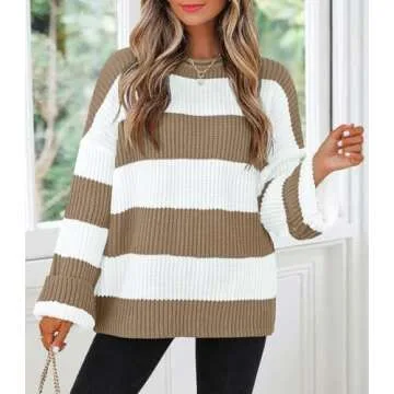 Show more Introducing the ultimate cozy companion for your wardrobe: the ZESICA Women's Fall Long Sleeve Crew Neck Striped Color Block Comfy Loose Oversized Knitted Pullover Sweater. This exquisite piece combines a trendy design with a luxurious feel, making it the perfect go-to sweater for any occasion. Designed with flared long sleeves and a vibrant striped color block pattern, this sweater promises to keep you stylishly warm!