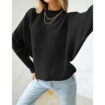 ZESICA Women's Fall Turtleneck Batwing Long Sleeve Ribbed Knit Casual Soft Pullover Sweater Jumper Top,Black,Medium