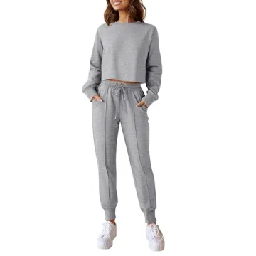 ZESICA Women's Long Sleeve Crop Top and Pants Pajama Sets 2 Piece Jogger Long Sleepwear Loungewear Pjs Sets,Grey,Small