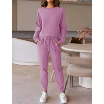 a long sleeve crop top and long elastic waist pants, making it the