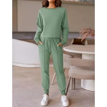 ZESICA Women's Long Sleeve Crop Top and Pants Pajama Sets 2 Piece Jogger Long Sleepwear Loungewear Pjs Sets,Green,Small