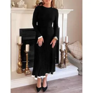 Show moreThe **ZESICA Women’s Long Sleeve Sweater Dress** is a stunning choice for any fashion-savvy individual looking to elevate their wardrobe. This stylish fall dress features a ribbed knit fabric that not only feels soft and comfortable against the skin but also keeps you warm during those cooler autumn days. With its classic crewneck design and elegant long sleeves, this pleated A-line maxi dress embodies versatility, making it perfect for various occasions such as weddings, cocktail parties, or even a sophisticated work ensemble. Available in a striking black color complemented by contrast hemlines, this dress promises to highlight your feminine curves with a flattering fit that is effortlessly chic.