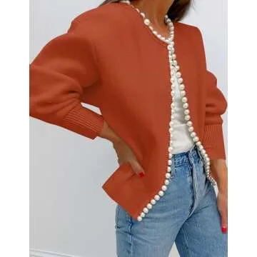Show moreIntroducing the **ZESICA Women's Open Front Cardigan Sweater**, a versatile and trendy wardrobe essential designed to elevate your style! Made with a sumptuous blend of soft, breathable, and stretchy knit fabric, this cardigan not only ensures comfort but also provides warmth during the chilly months without adding bulk. The open front design showcases a unique decorative pearl embroidery along the collar and placket, giving it a touch of elegance that's perfect for both casual outings and more formal occasions. Available in rust and a variety of sizes, it promises a flattering fit for everyone.