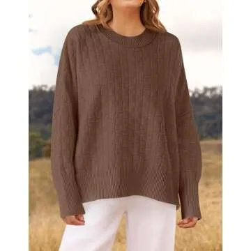 ZESICA Women's Oversized Sweaters 2024 Fall Winter Trendy Long Sleeve Crewneck Knit Pullover Tops Nutmeg S