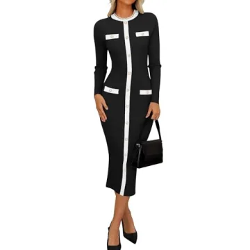 Show more Step into the upcoming seasons with the ZESICA Women's Ribbed Crewneck Sweater Dress, your go-to outfit for both comfort and style in 2024. This exquisite long-sleeve dress is designed with a keen eye for detail, combining functionality with fashion. Featuring a luxurious ribbed knit fabric, this dress offers a soft, cozy feel that embraces your body in all the right places, providing a flattering silhouette. The striking color-block design adds a touch of uniqueness, elevating your wardrobe essentials to a new level. Designed with a crew neck and distinctive decorative buttons, it effortlessly balances elegance with chic vibes, making it suitable for any occasion.