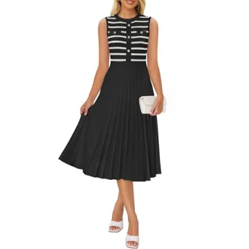 Introducing the ZESICA Women's Sleeveless Striped Midi Dress, your ultimate summer essential that transcends the ordinary. This beautifully crafted dress features a classic crew neck and an eye-catching striped pattern, designed not just for style but for comfort too. Made from luxurious knitted fabrics, it offers a soft touch that will keep you feeling delightful, whether you’re enjoying a sunny day out or attending a special evening event. The breathable and skin-friendly...