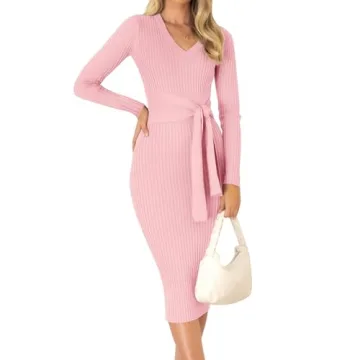 Show moreIntroducing the ZESICA Women's Spring Sweater Dress — a stunning amalgamation of style and comfort, perfect for the modern woman who desires sophistication in her wardrobe. Made with high-quality materials, this bodycon sweater dress is not just any ordinary outfit; it embodies versatility and beautiful craftsmanship. The sexy V-neck neckline offers a chic look, while the tie waist with a belt is meticulously designed to enhance your figure, presenting a flattering silhouette that can turn heads. The ribbed long sleeves provide just the right amount of coverage while keeping you warm, making it suitable for all seasons. Available in sizes from S to XL, this dress is thoughtful in its design, ensuring a perfect fit for different body types.