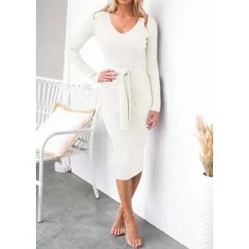 Show moreIntroducing the ZESICA Women's Spring Sweater Dress, a stunning combination of style and comfort designed for modern women. This elegant V-neck midi dress features ribbed long sleeves and a slim fit that flatters your figure, making it perfect for various occasions. Crafted from a super soft and skin-friendly fabric, it promises to keep you comfortable while ensuring you look fabulous. Whether you're attending a wedding, going on a date, or simply enjoying a casual day out, this versatile dress is an ideal choice.
