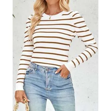 ... Show more Introducing a stunning addition to your wardrobe: the Women's Striped Pullover Sweater. Crafted with precision, this lovely piece is designed to merge style with comfort. Made from a soft and stretchy fabric, this pullover offers unparalleled comfort and flexibility. The stylish crew neck and puff long sleeves create a chic silhouette that is both fashionable and functional. Its striped print adds a playful yet sophisticated element, making it a versatile choice for any woman.