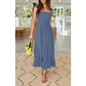 Show moreIntroducing the exquisite ZESICA Women's Summer Boho Spaghetti Strap Dress - a captivating blend of style, comfort, and versatility. This stunning maxi dress is adorned in a rich dusty blue hue that embodies the essence of summer delight. The soft, lightweight fabric drapes beautifully, providing couples with a forgiving silhouette that elevates confidence and charm. Perfect for new moms rediscovering their elegance post-pregnancy or anyone seeking a flattering fit, this dress not only complements your shape but also adds a touch of feminine grace to every outing.