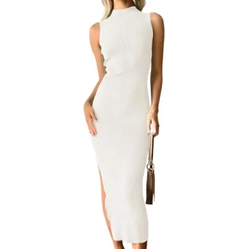 Show moreIntroducing the ZESICA Women's Summer Knitted Sweater Dress - the perfect blend of style and comfort, designed to elevate your warm-weather wardrobe! This dress enables you to achieve a chic and sophisticated look effortlessly. Crafted from high-quality, soft materials, the knitted fabric is not only breathable but also boasts high elasticity, ensuring a flattering fit that accommodates various body shapes. The mock neck and sleek sleeveless design add sophistication, making it ideal for a range of occasions.
