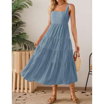 Embrace summer in style with the ZESICA Women's Summer Sleeveless Dress, designed to be your go-to for sunny days at the beach or casual outings. This stunning sundress features a delightful square neckline and a sleeveless design that ensures you stay cool even in the heat. The dress boasts a loose fit with an elastic band at the back waist that flatters all body types, making it a versatile addition to any wardrobe.