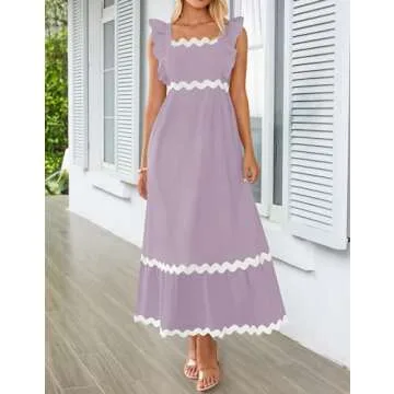 ZESICA Women's Summer Sleeveless Ruffle Dresses Square Neck Backless Boho Flowy Maxi Sundress with Pockets, Purple Taro, Medium