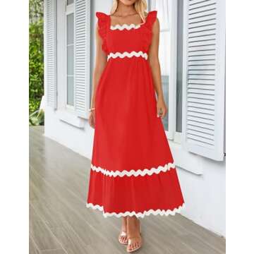 Show more Introducing the ZESICA Women's Summer Sleeveless Ruffle Dress, a stunning addition to your seasonal wardrobe that combines elegance with functionality. This beautifully designed maxi sundress features a chic square neckline and fashionable ruffled sleeves that not only elevate your look but also embrace comfort during warm days. Crafted from high-quality, lightweight fabric, it ensures a flowy fit that gracefully drapes over your body, completing any outfit with a touch of boho flair. The unique backless design showcases your silhouette gracefully, making it perfect for warm evenings.