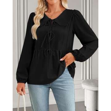 Show moreElevate your wardrobe with the ZESICA Women's Tie Front Peplum Top – a stunning blend of elegance and style crafted for the modern woman. This beautiful blouses shirt features a delightful mix of chic details, including puff sleeves, a bow tie front, and a stylish lapel doll collar. The lace-up peplum design adds a contemporary twist, making it perfect for both casual outings and dressy occasions alike. Available in a classic black, this top comes in sizes ranging from Small (US 4-6) to X-Large (US 16-18), ensuring a comfortable fit for every body shape. The thoughtful design includes invisible snap buttons that allow you to showcase your style while keeping everything neatly in place.