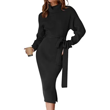 Show moreYour wardrobe is destined to be elevated with the ZESICA Women's Turtleneck Sweater Midi Dress, a perfect blend of elegance and comfort that fits seamlessly into any occasion. Crafted from a high-quality, soft, and breathable fabric, this stunning ribbed knit sweater dress boasts a chic design featuring a loose turtleneck and a uniquely styled drop shoulder. The addition of a removable waist belt not only enhances your curves but also allows you to customize the fit to flatter every body shape, making it ideal for all silhouettes.