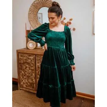 Show more Experience the elegance and sophistication with our stunning dress that promises to be a showstopper at any occasion. Crafted from soft and cozy velvet, this dress is designed for maximum comfort without sacrificing style. The fabric is not only thick and stretchy, ensuring a perfect fit, but it also feels luxurious against your skin, making it ideal for all-day wear.