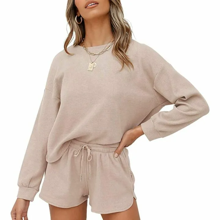 Show moreIntroducing the ultimate casual lounge wear set that blends comfort with simple style – perfect for every woman’s wardrobe. Crafted by a trusted brand, this set features a fashionable striped pattern with a long sleeve top and casual loose fit silhouette. The top is complemented by drawstring elastic shorts, making it easy to adjust for a perfect fit. Practical pockets on each side add convenience without sacrificing style. Designed for versatility, it’s an ideal outfit whether you’re lounging at home, running errands, or enjoying a casual outing. With sizes ranging from S to XXL, this set offers a fit for all body types and preferences. Moreover, the soft material feels luxurious against the skin, making it an essential for any comfort-seeker. Each set includes a long sleeve top and matching shorts that are as functional as they are stylish.