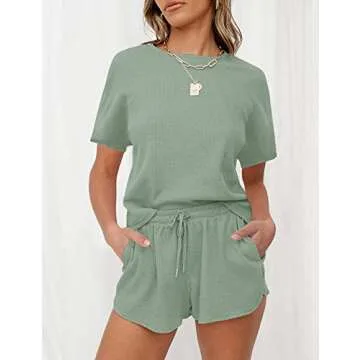 ZESICA Women's Waffle Knit Long Sleeve Top and Shorts Pullover Nightwear Lounge Pajama Set with Pockets