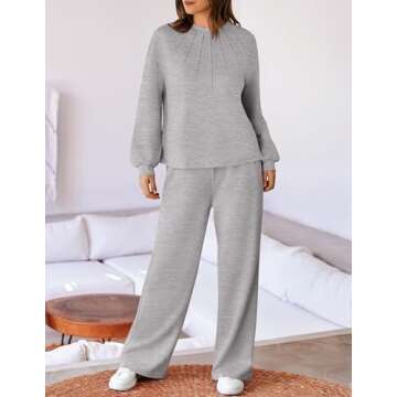ZESICA Womens Casual Pajama sets Long Sleeve Tops Wide Leg Long Pants 2 Piece Outfits Lounge Sets with Pockets,Light Grey,X-Large