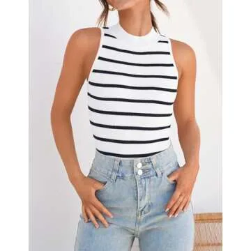 Show more Discover the ZESICA Women's Ribbed Tank Top, a perfect blend of style and comfort designed to elevate your wardrobe. Made from high-quality, soft and stretchy knit fabric, this sleeveless tank top offers a lightweight and breathable experience that is ideal for summer outings. With a chic high neckline and a ribbed texture, it hugs your curves beautifully while providing a flattering fit for all body types. The elegant striped design makes it a versatile piece suitable for layering or wearing solo, allowing you to express your personal style effortlessly.