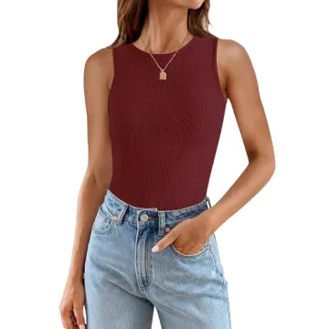 Show more Introducing the ZESICA Women's Ribbed Tank Top, your go-to summer essential that combines style, comfort, and versatility. Crafted from a soft and stretchy knit fabric, this tank top is designed to be lightweight and breathable, making it perfect for staying cool during those warm sunny days. With a classic crewneck and a flattering sleeveless design, this ribbed knit tank features a racerback that highlights your shoulders and delivers a snug fit that accentuates your curves beautifully. Available in a rich wine color, it’s perfect for adding a pop of color to your wardrobe.
