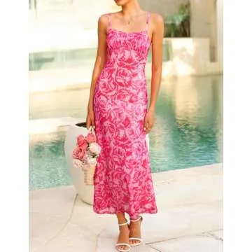 Show more This stunning ZESICA Womens Summer Floral Spaghetti Straps Maxi Dress is a must-have addition to your summer wardrobe. Crafted from lightweight and breathable fabric, this dress ensures you stay comfortable while exuding style on sunny days. Featuring a chic floral print, this sleeveless, backless dress is designed with spaghetti straps and a ruffle hem, showcasing a flattering slim fit that highlights your silhouette. Made for the modern woman, each detail of this dress reflects vitality and charm, making every summer occasion a bit more special.