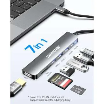 ZESKRIS 7-in-1 USB C Hub with 4K HDMI, 100W Power Delivery, USB-A Data Ports & Card Readers