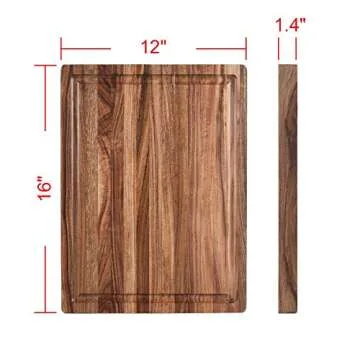 ZESPROKA Acacia Wood Cutting Board - Ultra Thick 16” x 12” x 1.5” - Kitchen Chopping Board with Juice Drip Groove - Ideal for Chopping Meat, Vegetables, Fruits, Bread, Cheese, Brown, CB01