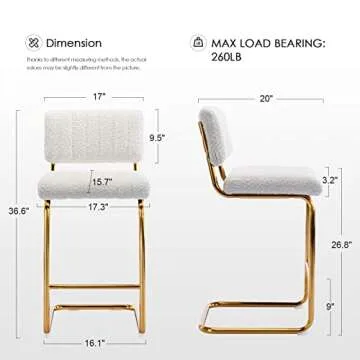 Zesthouse Mid Century Modern Counter Height Stools Set of 4, 26'' Upholstered Boucle Fabric Counter Barstools with Channel Tufting for Kitchen Island, Armless Bar Chairs with Backs & Gold Base, White
