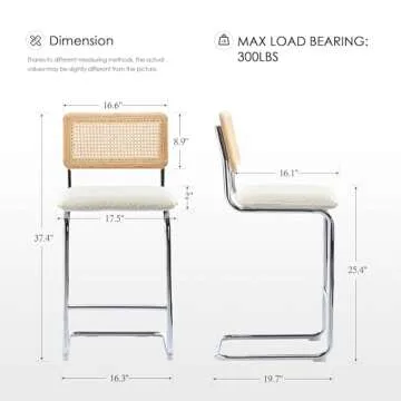 Zesthouse Natural Rattan Bar Stools Set of 4, 26'' Upholstered Boucle Fabric Barstools with Solid Wood Back, Modern Counter Height Chairs for Kitchen Island, Mid Century Cantilevered Design, White