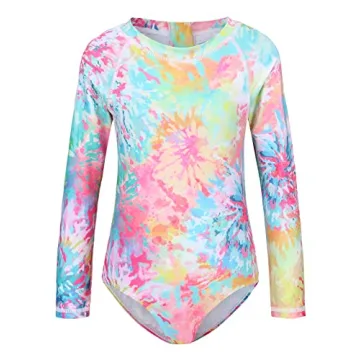 Show moreIntroducing the Zestonie Big Girls Long Sleeve Rash Guard One Piece Swimsuit, the ultimate in swimwear for your little adventurer! This exceptionally crafted swimsuit is not only multi-functional but also designed with an eye for fun and style. Made from a robust yet flexible blend of 80% polyester and 20% spandex, it offers both the durability necessary for countless beach outings and the comfort your child will love during their water escapades. The swimsuit comes in a range of stunning tie-dye prints that are guaranteed to turn heads while being fade-resistant, ensuring that your little one shines bright wherever they swim.