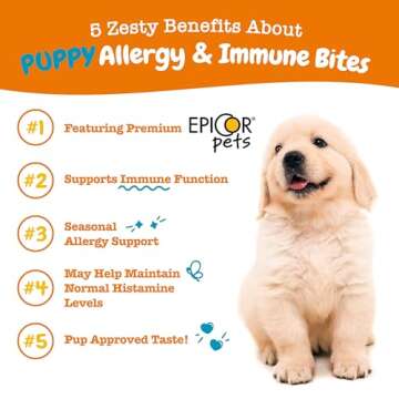 Show moreIntroduce your furry friend to the ultimate in health and happiness with Zesty Paws Dog Allergy Relief Soft Chews. Specially formulated for puppies aged 8 weeks to 1 year, these tasty treats not only satisfy your pup's cravings but also deliver essential health benefits. Enriched with premium ingredients, these chews focus on supporting digestive health, boosting immune function, and providing relief from seasonal allergies. With a delightful lamb flavor, they make taking care of your pup a delightful experience.