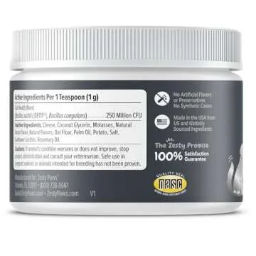 Crafted with care, Zesty Paws incorporates the premium DE111 Probiotic, which has been clinically studied to support your pet's digestive health and boost their immune system. Whether your dog is a small pup or a gentle giant, this product is specially formulated to cater to all breeds. It goes beyond mere taste - it's a health-boosting powerhouse!