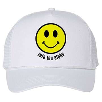 Zeta Tau Alpha ZTA Smiley Face Trucker Hat White