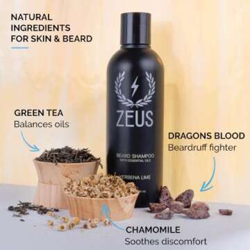 ZEUS Beard Shampoo Wash, Infused with Green Tea & Natural Ingredients to Cleanse and Soften Beard – 8 oz. Made in USA – Sandalwood